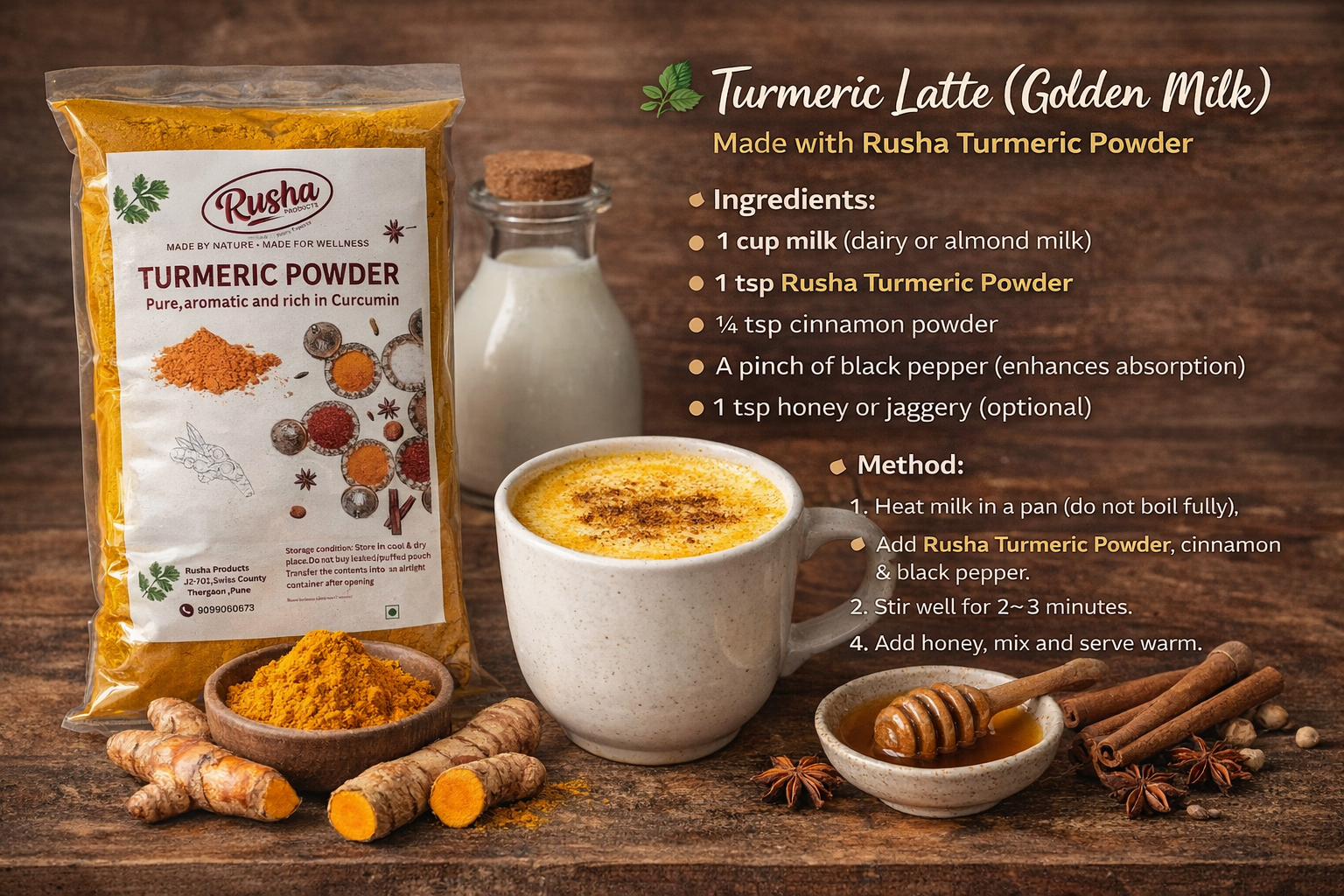 Turmeric Latte (Using Rusha Turmeric Powder)